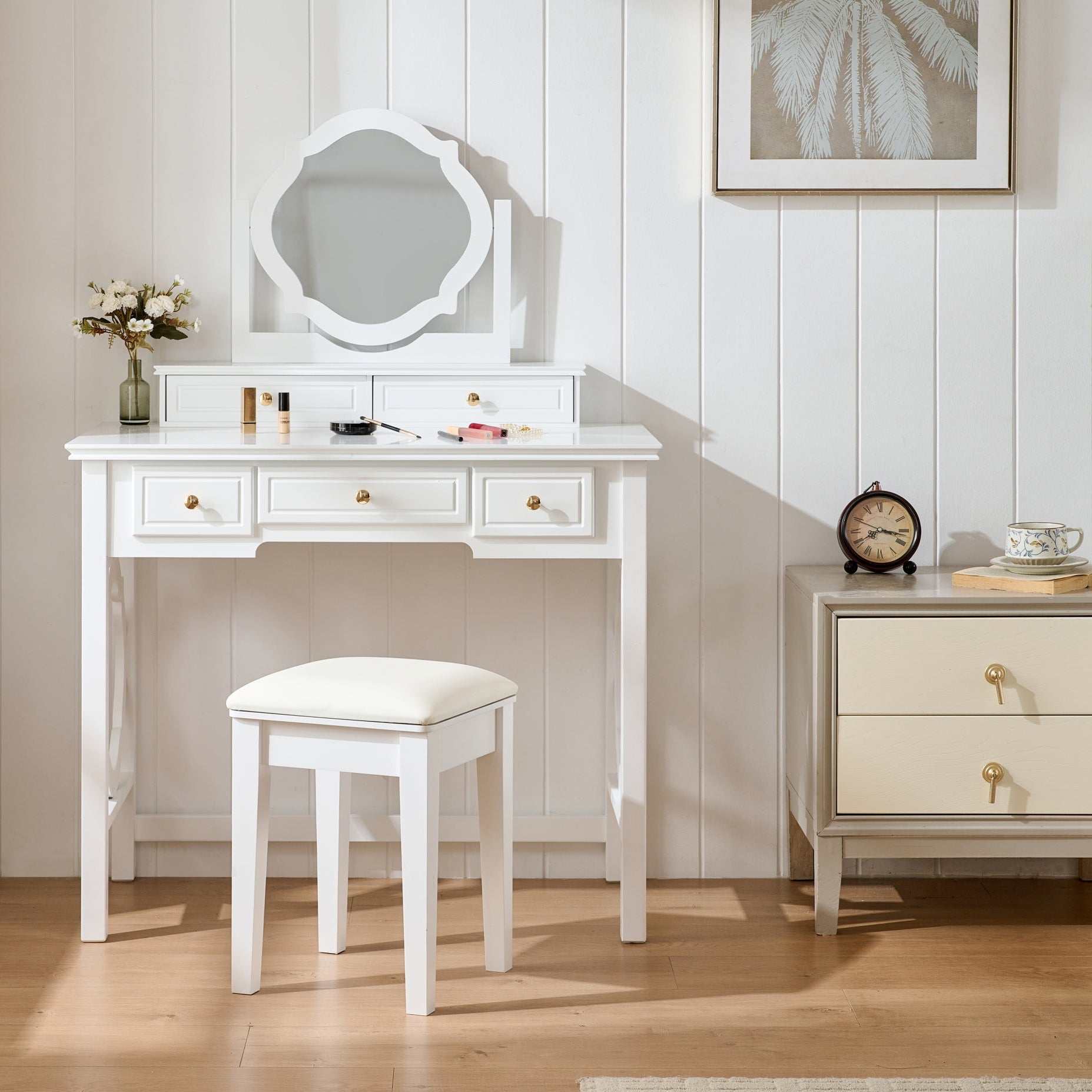 Blue Make Up Vanity Table and Stool Set with Mirror