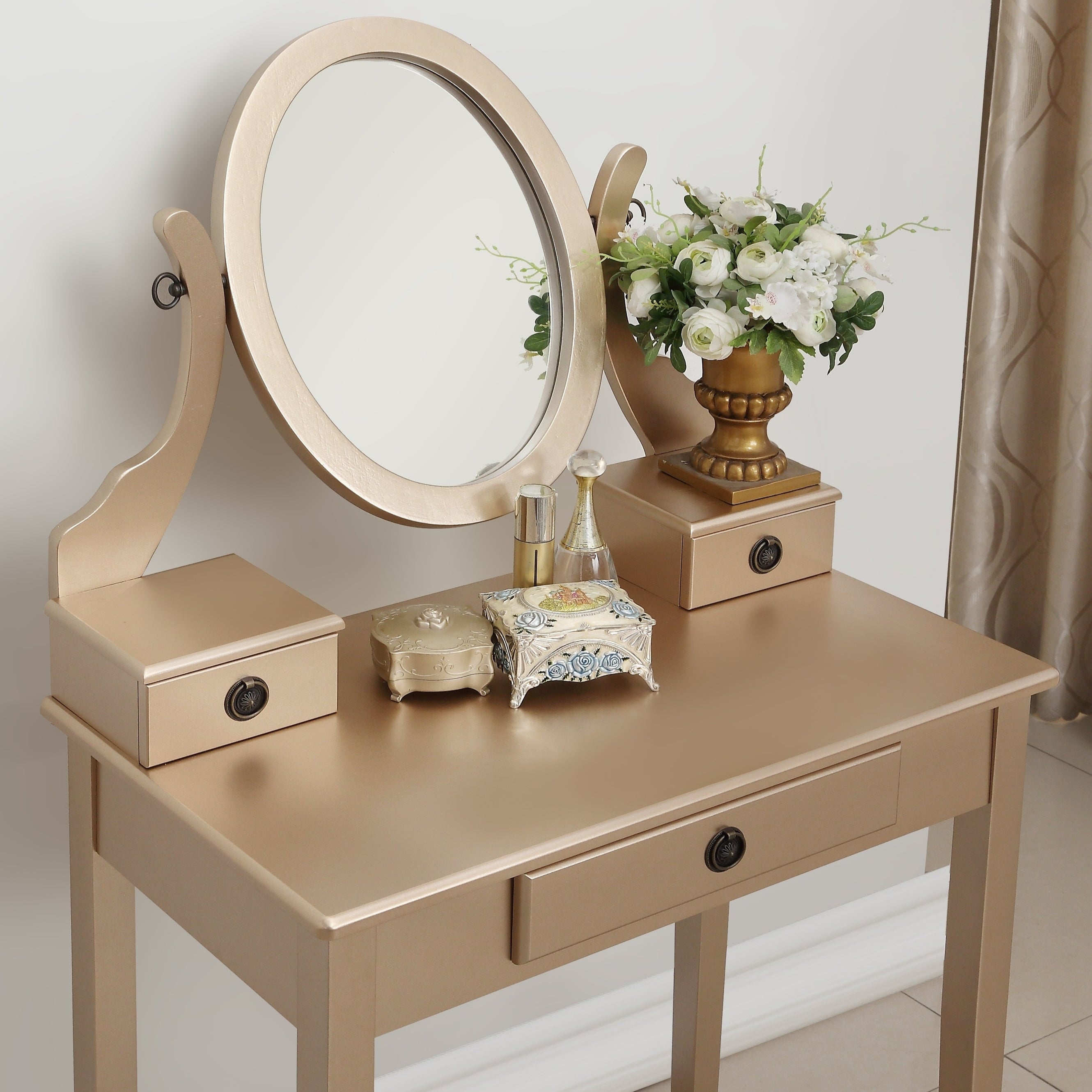 Gold Make Up Vanity Table and Stool Set with Mirror