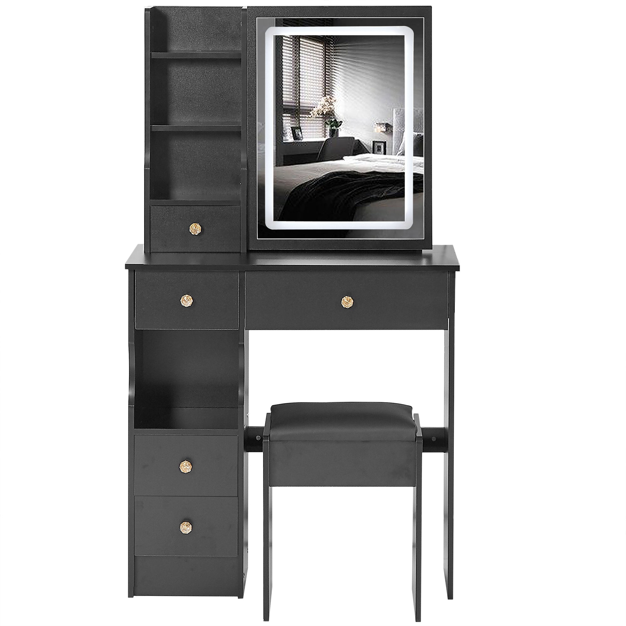 27.9'' Black Makeup Vanity Desk with Flip Top Mirror and LED Light