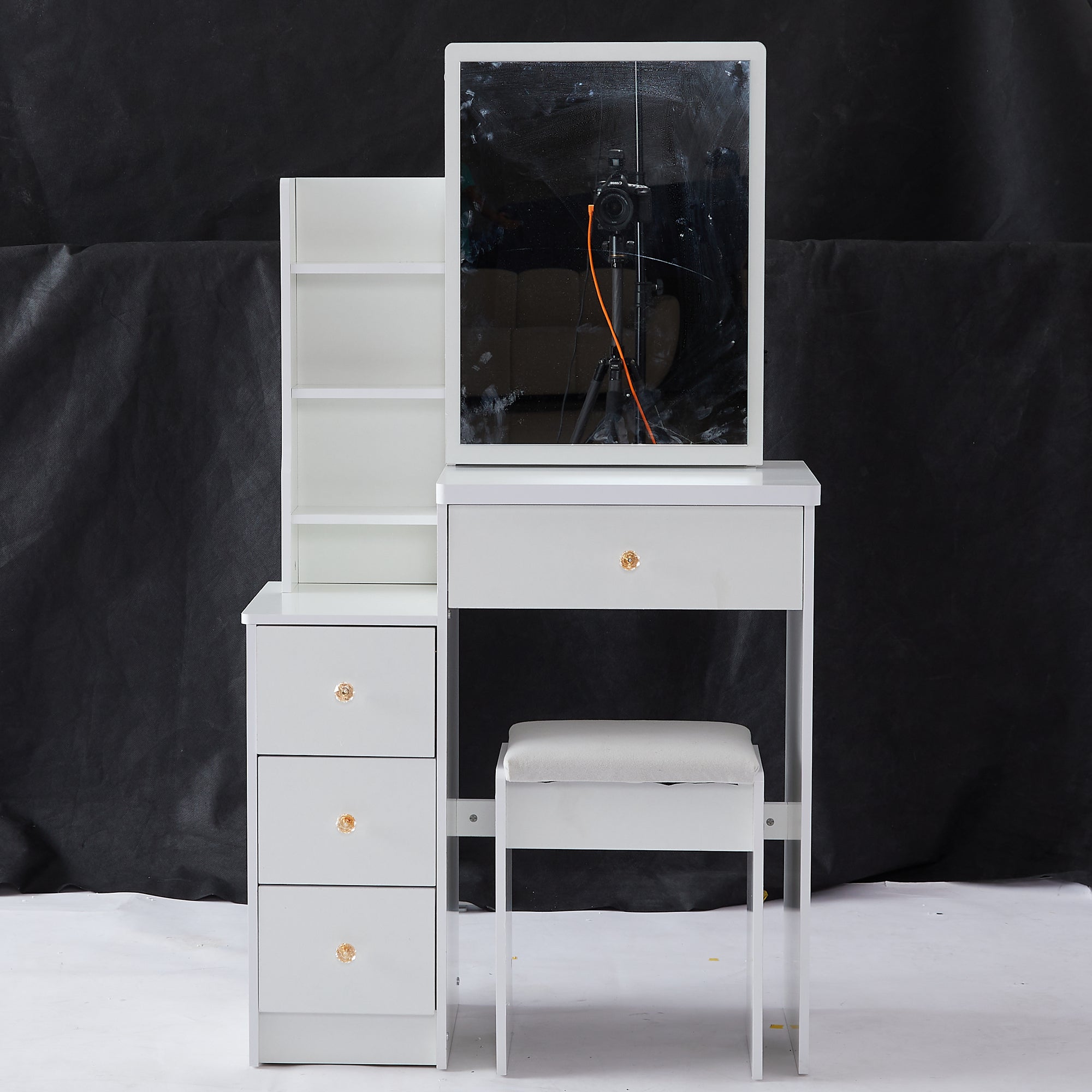 37' Middle Size Left Bedside Cabinet Vanity Table & Cushioned Stool Dresser Set