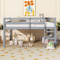 Full Rubber Wood Loft Grey Kids Bed with Ladder