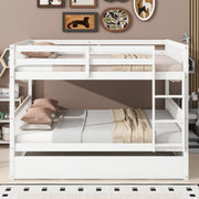 Full Over Full Rubber Wood Bunk Bed with Trundle Ladder & Guardrails