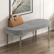 Stylish Bench Gray Chenille Upholstery Sleek Champagne Finish Metal Legs