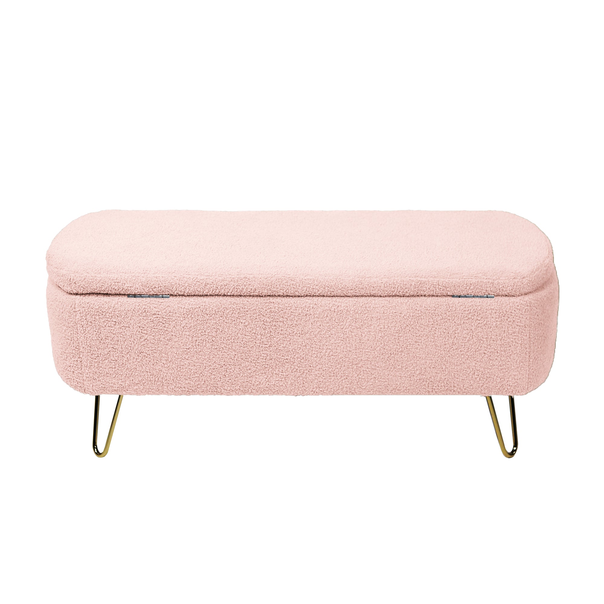 Modern Pink Storage Ottoman Bench for End of Bed Gold Legs