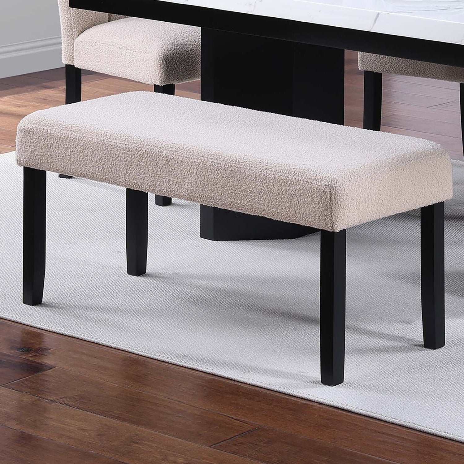 Soft Fabric Seat Neutral Tone Bench Black Wooden Tapered Legs