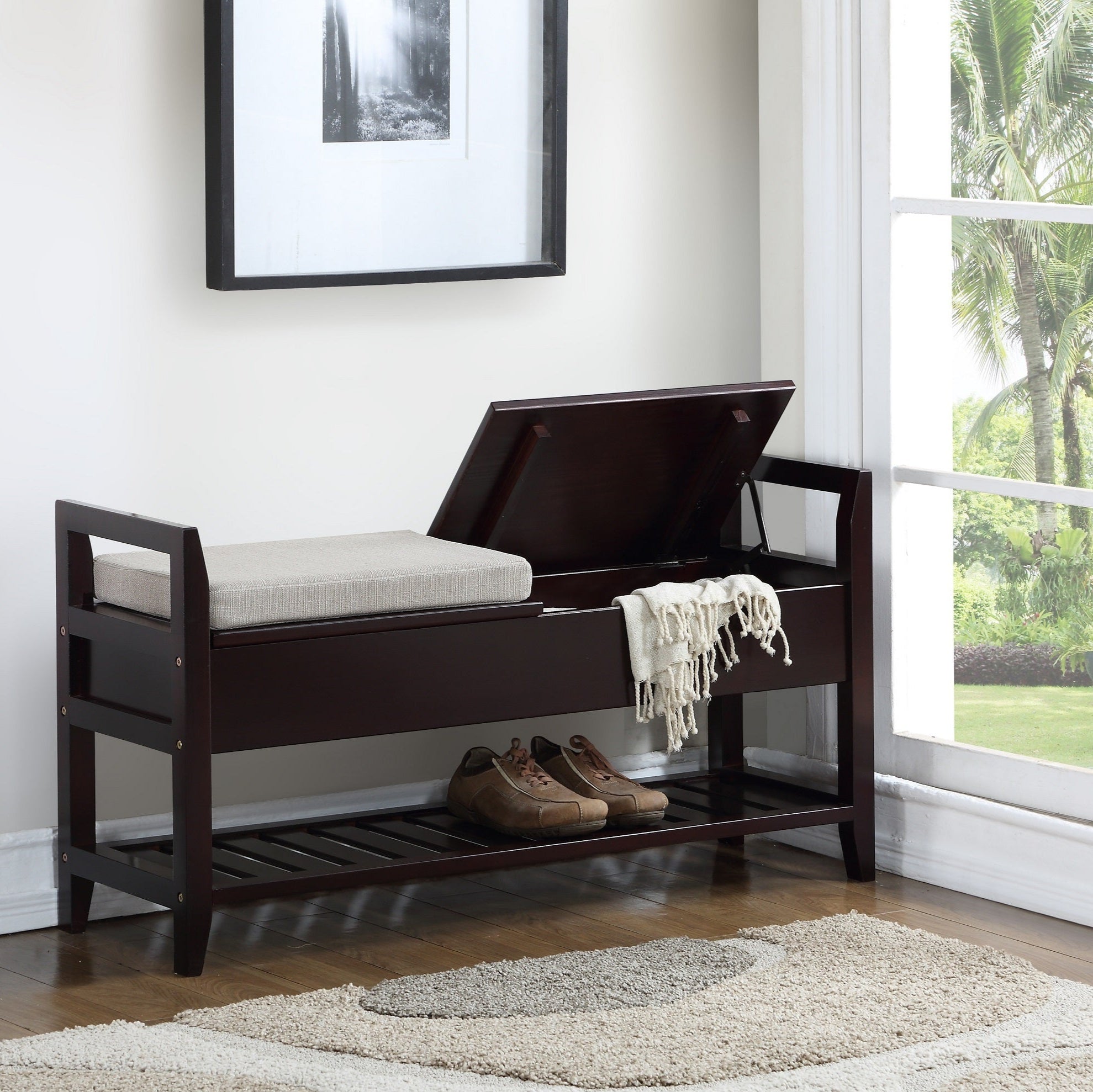 Storage Shoe Bench With 2 Separate Cushioned Seats