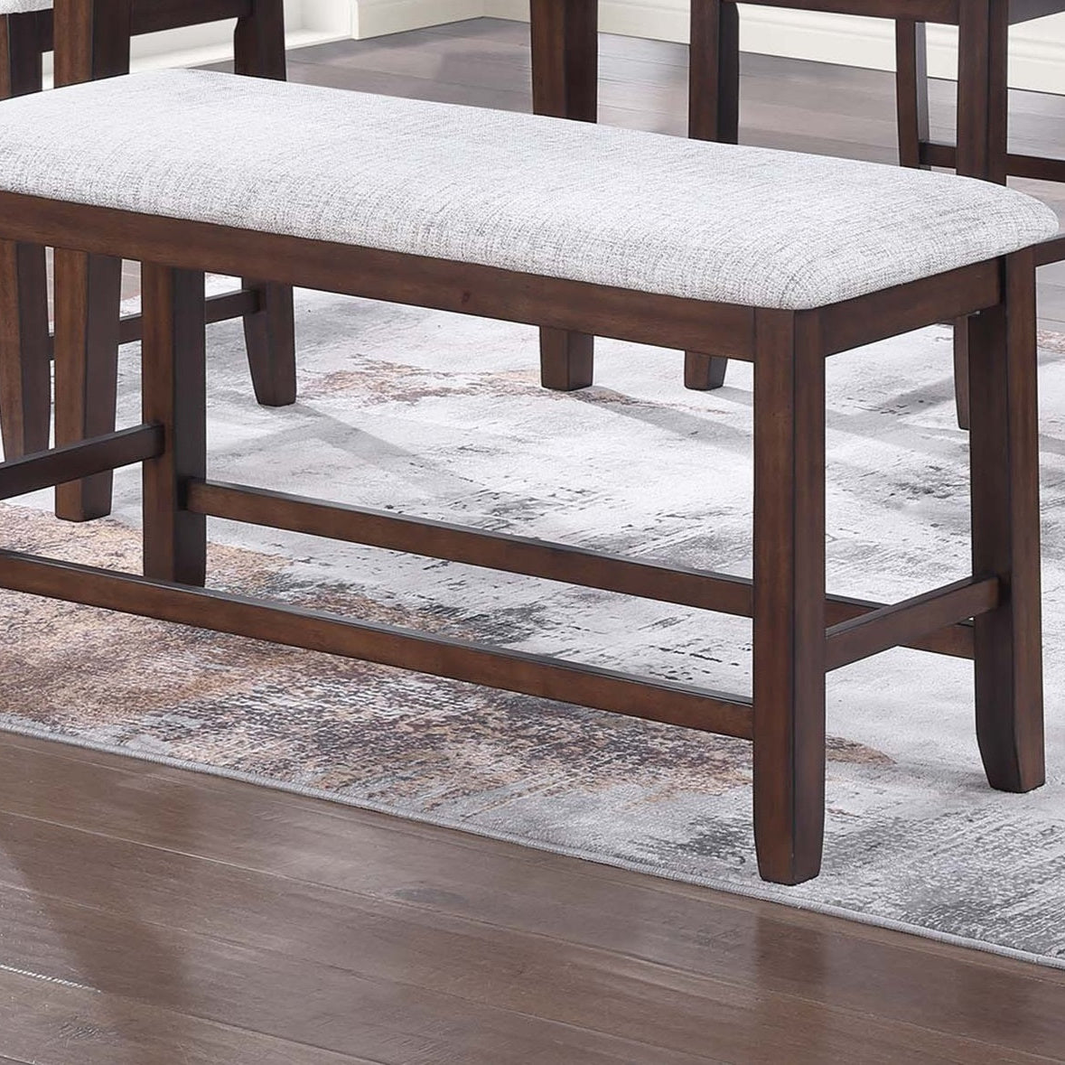 1pc Rustic Upholstered Counter Height Brown Dining Bench