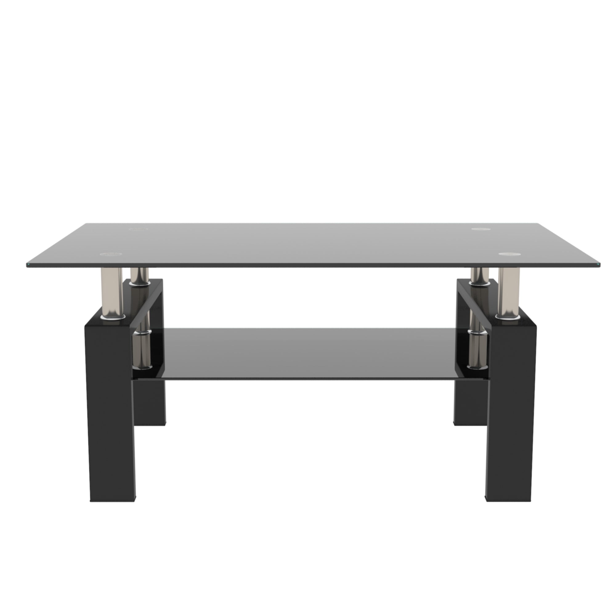 Modern Tempered Black Glass Coffee Table with 2-Layers
