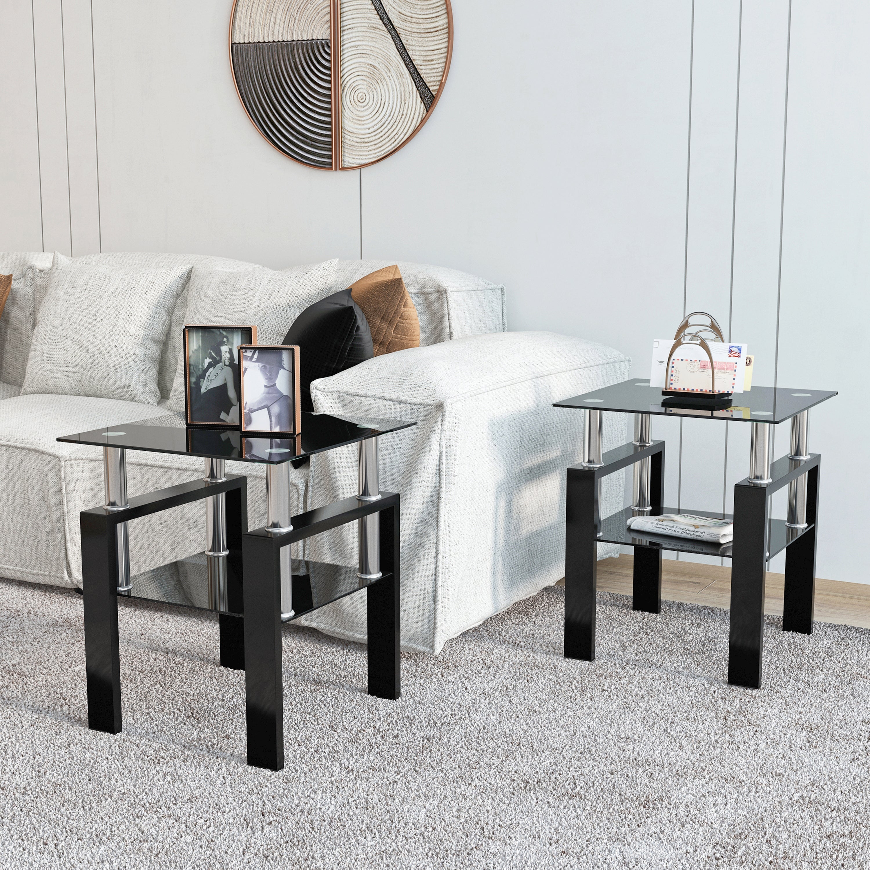 Modern Tempered Glass Tea Table Coffee Table End Table Set in Black