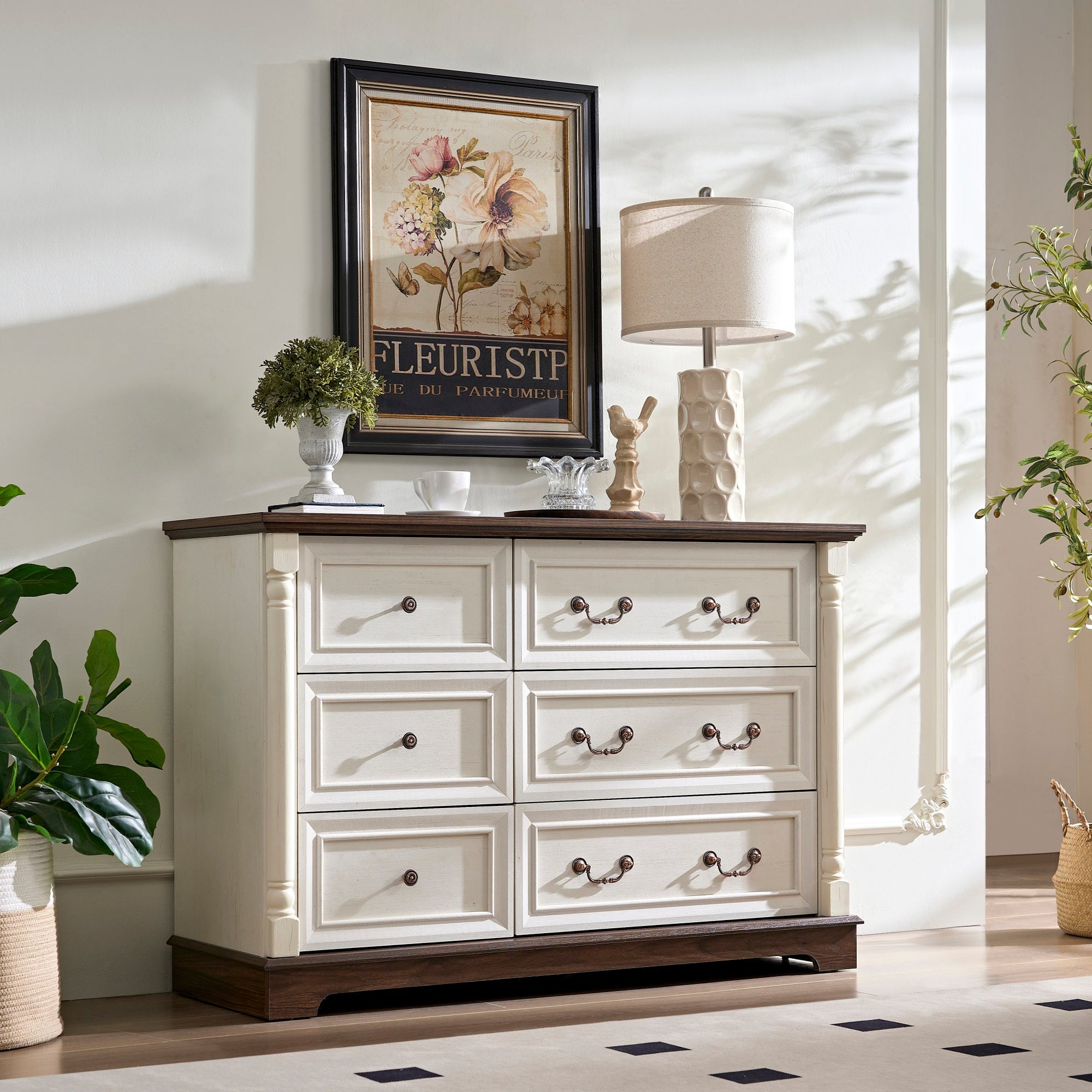Classic Modern Antique White 6-Drawer Dresser for Bedroom