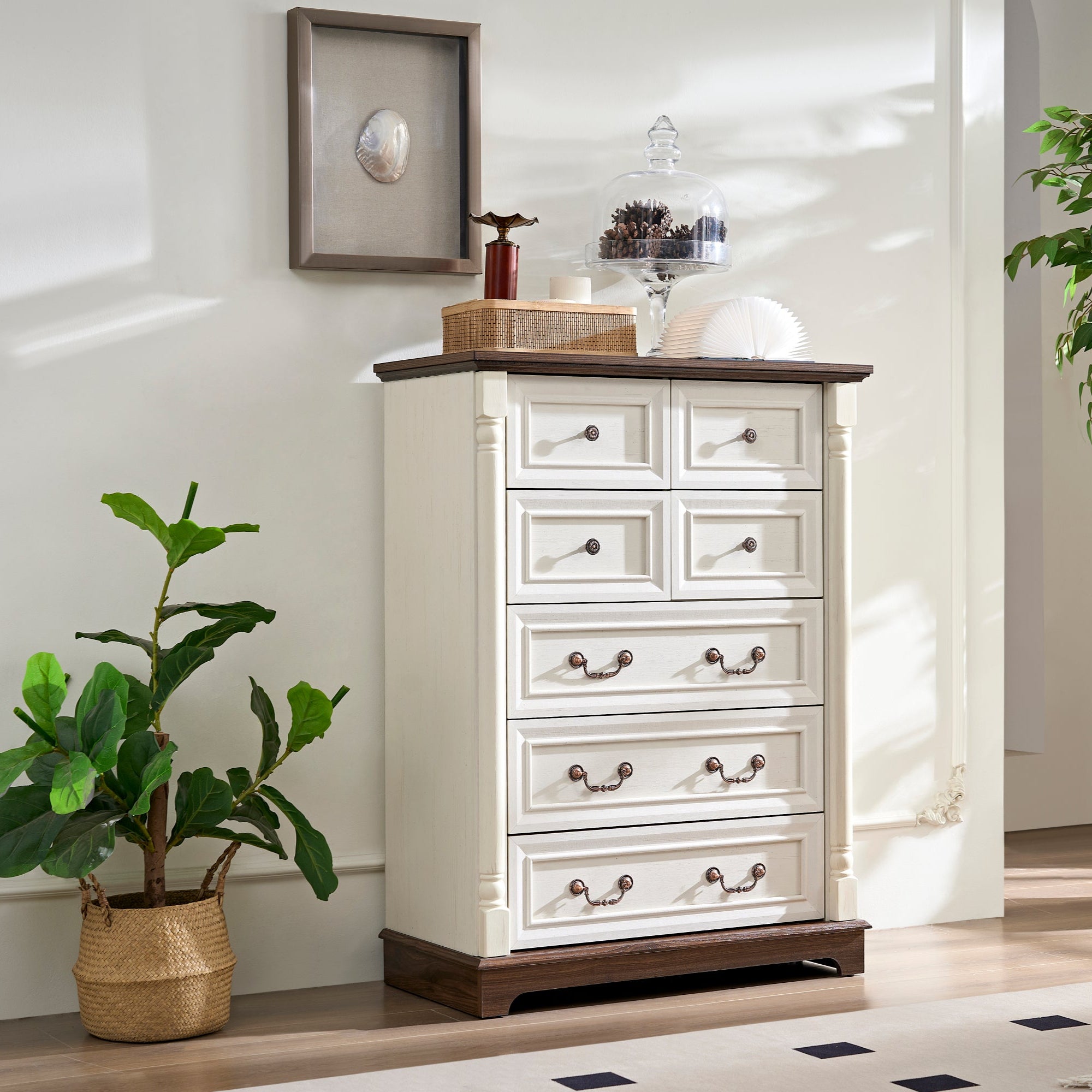 Farmhouse Vintage Antique White 7 Drawers Dresser with Natural Texture
