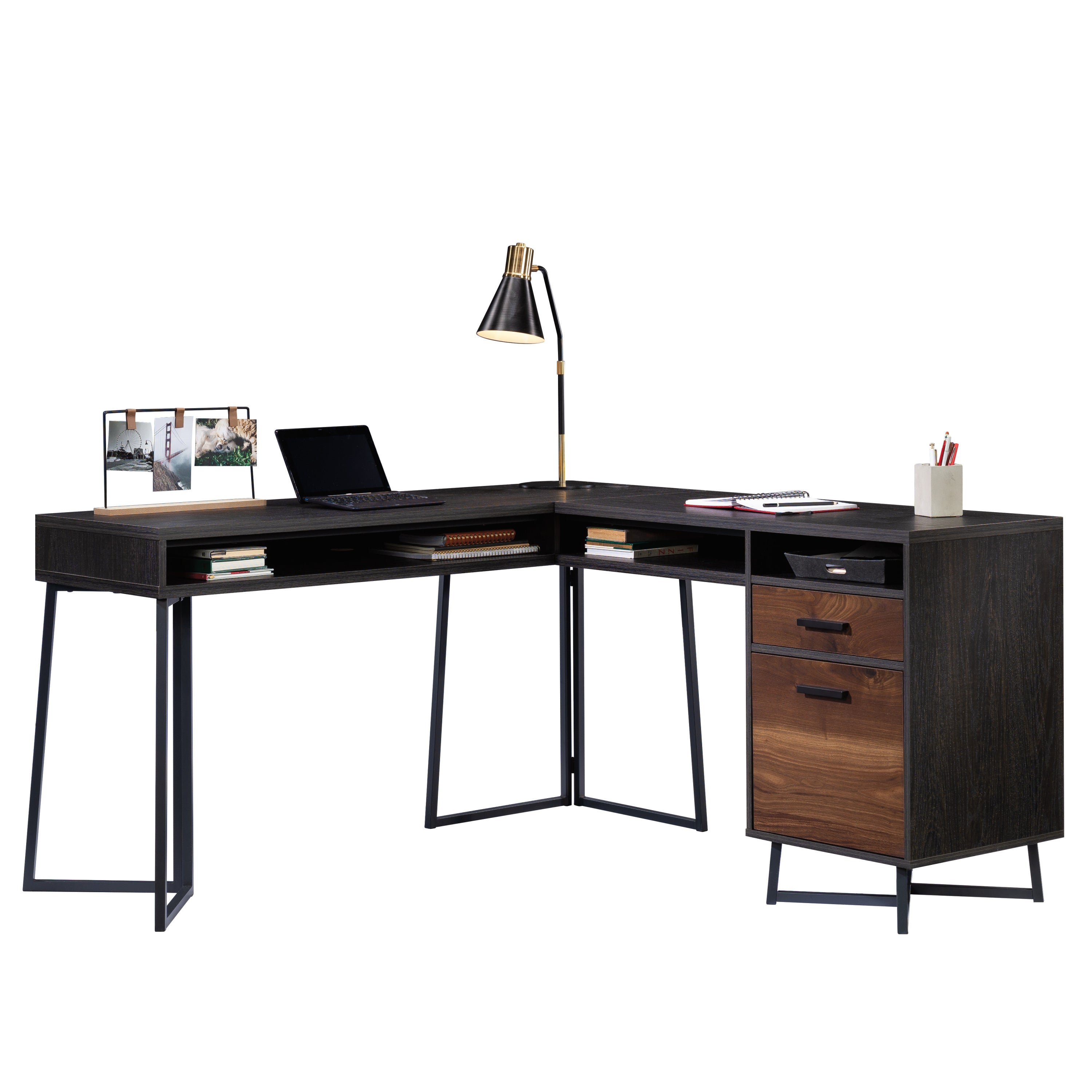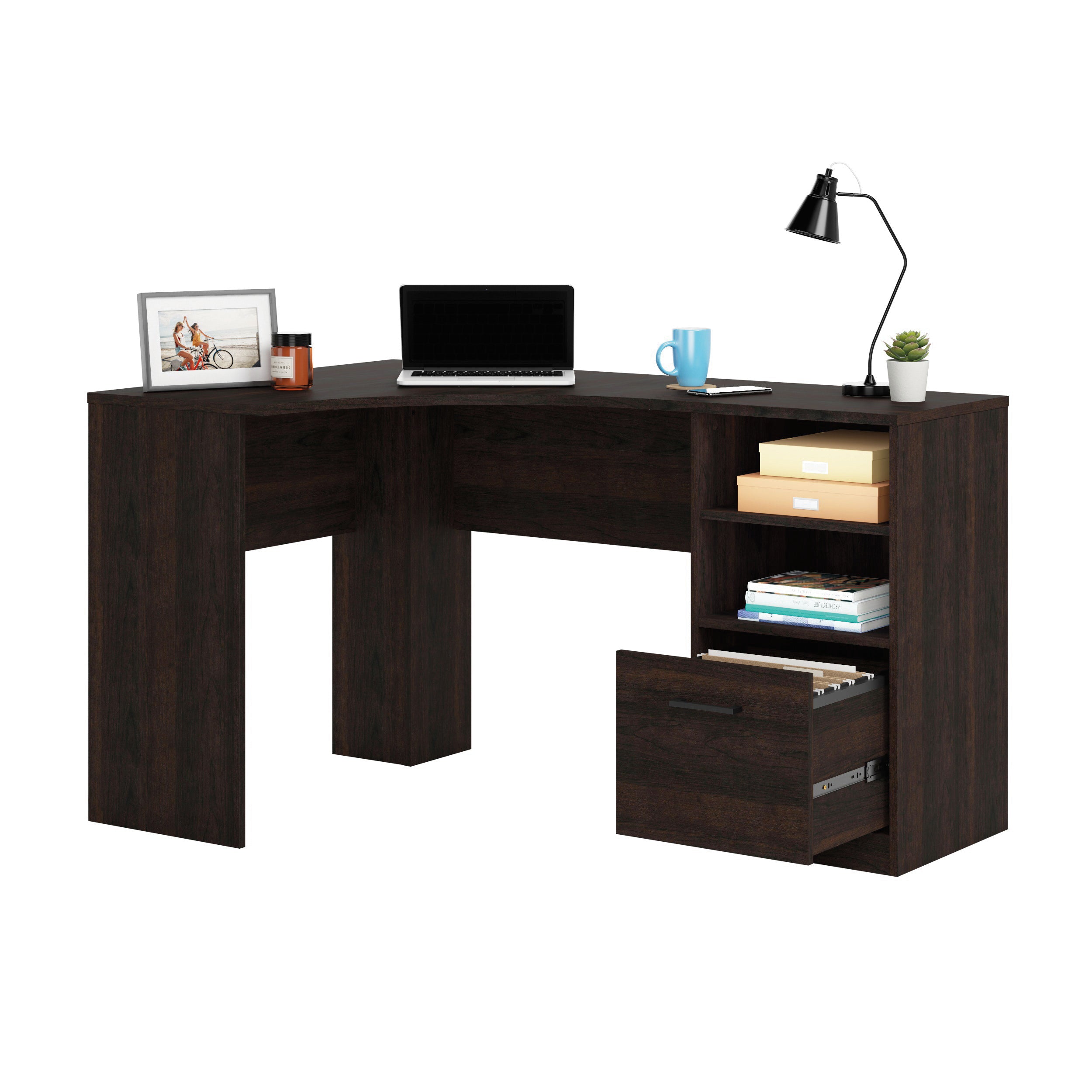 Dark Walnut Finish L-Shaped Desk