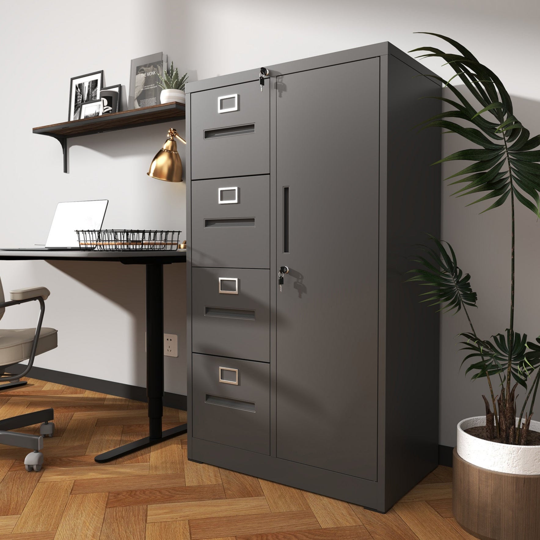 4 Drawer Lateral Tall Heavy-Duty Metal File Cabinet with Lock