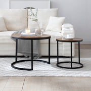 Set of 2 Nesting Side Round End Table Metal Frame Coffee Table