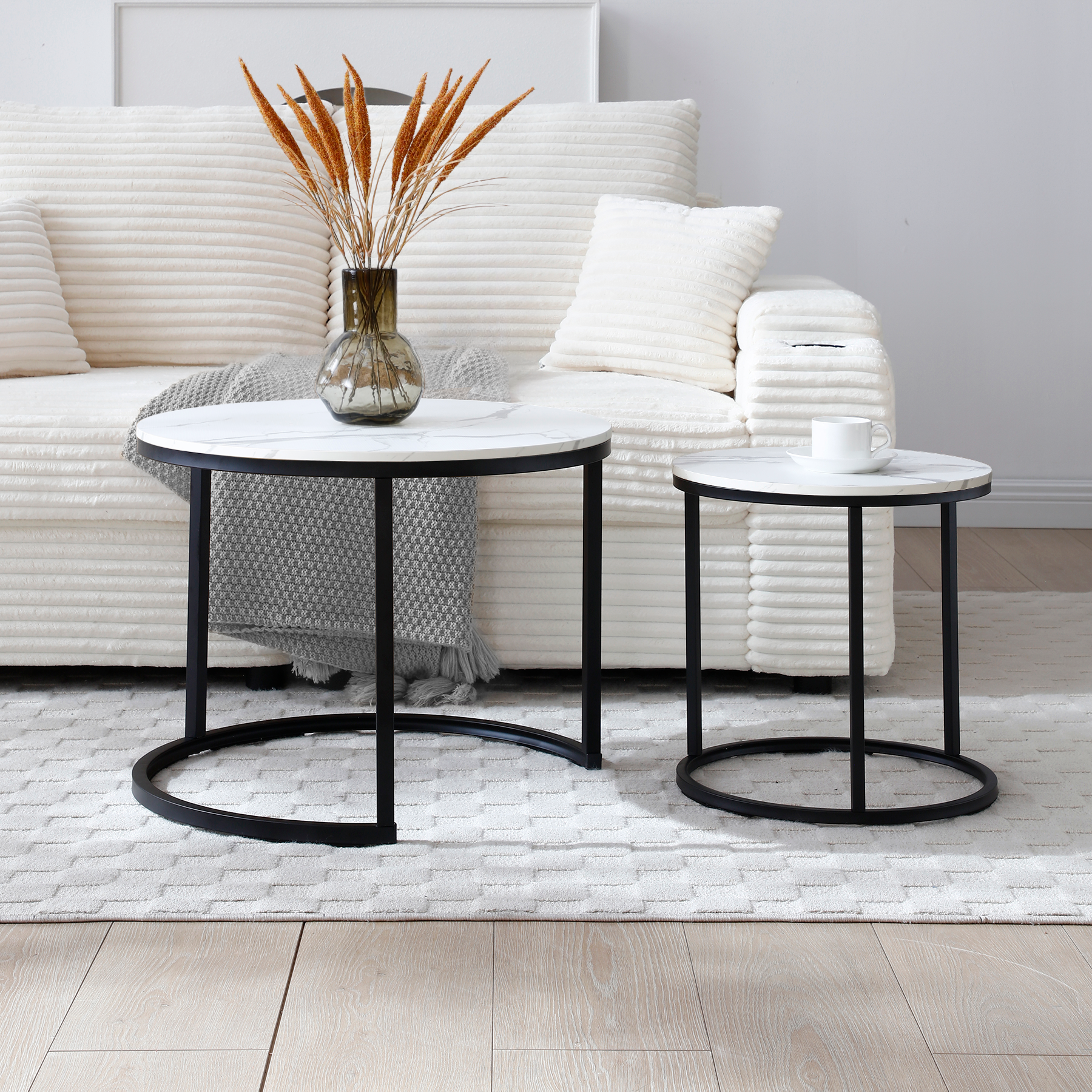 Nesting White and Gray Top Black Frame Circular Round Coffee Table