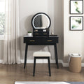 Black Finish Vanity Dresser with Mirror & Stool Set