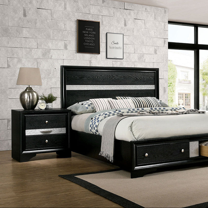 Contemporary Nickle Round Knob Handles Black Nightstand