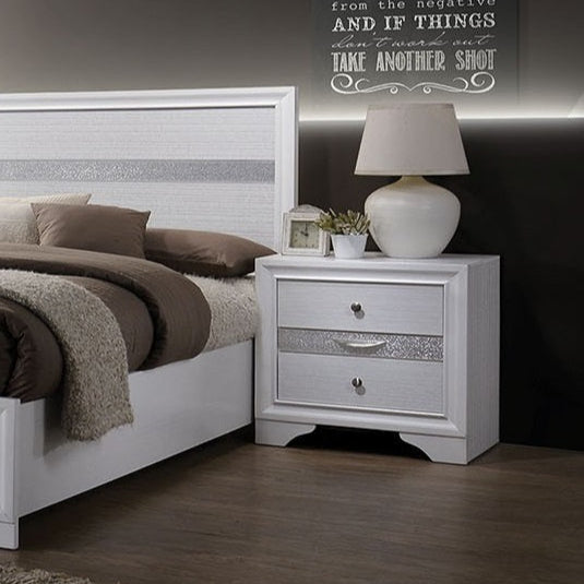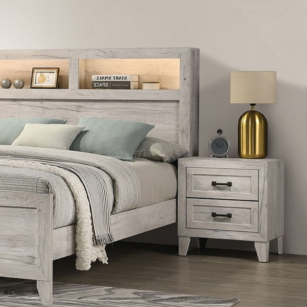 Elegant White Wash Finish Nightstand Bedside Table With 2-Drawers