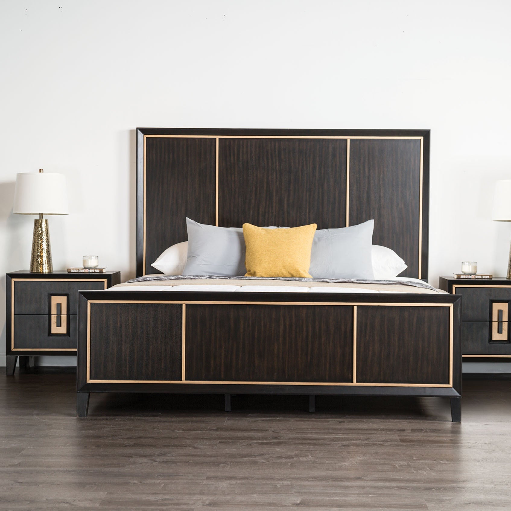 Modern Espresso 1pc Nightstand Gold Accent Trim Wooden Finger Pull