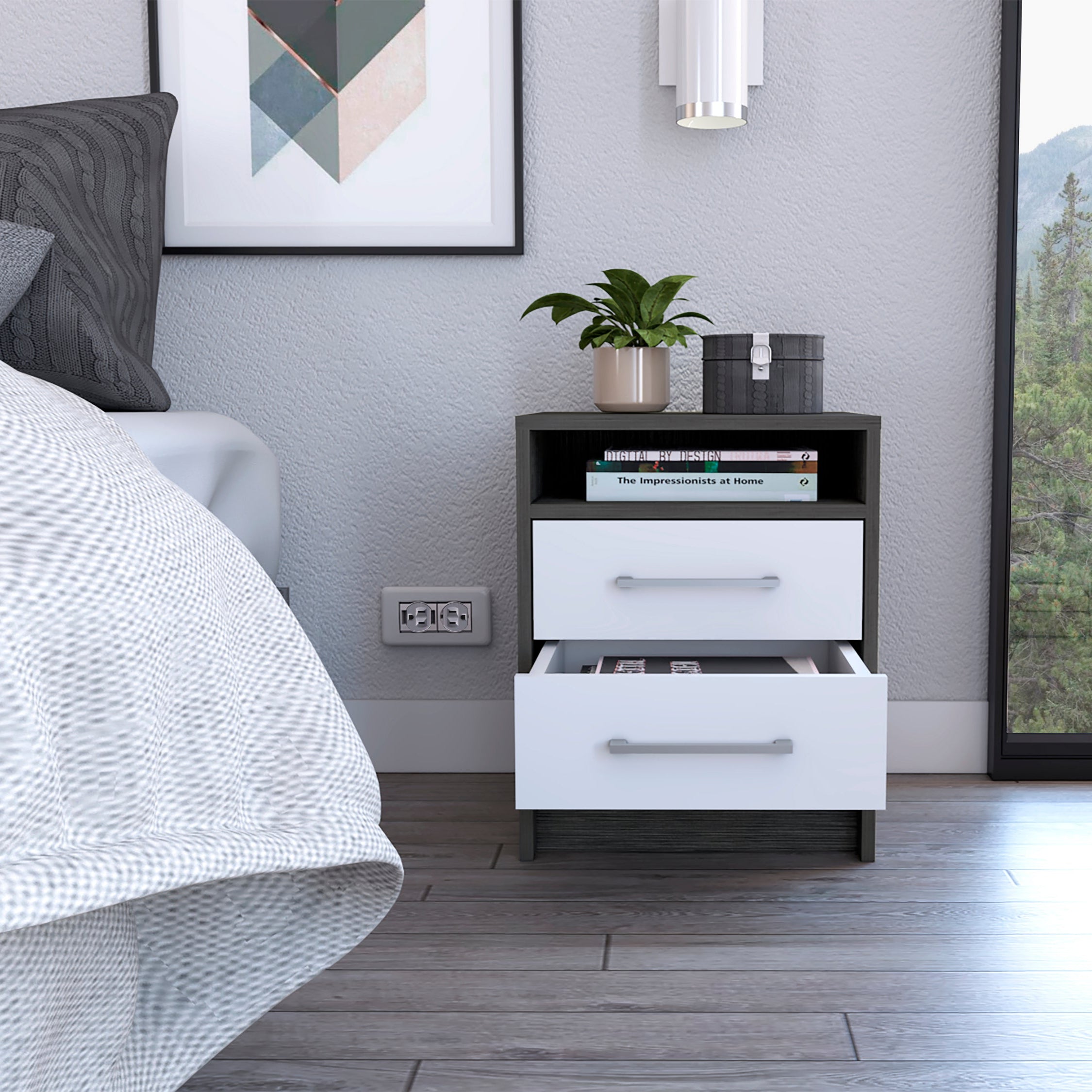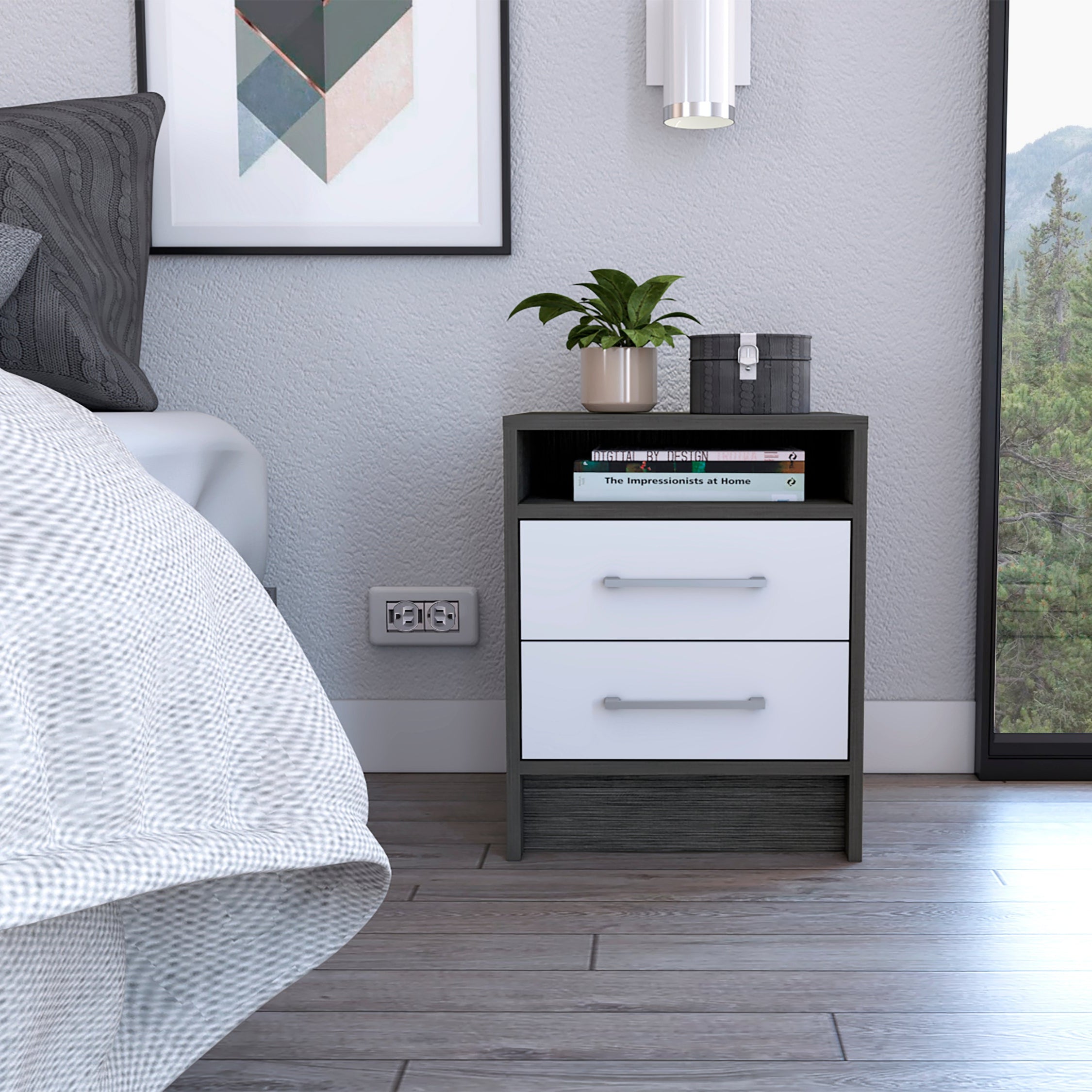 Modern 19.9' High Nightstand with Two Drawers Concealed Shelf