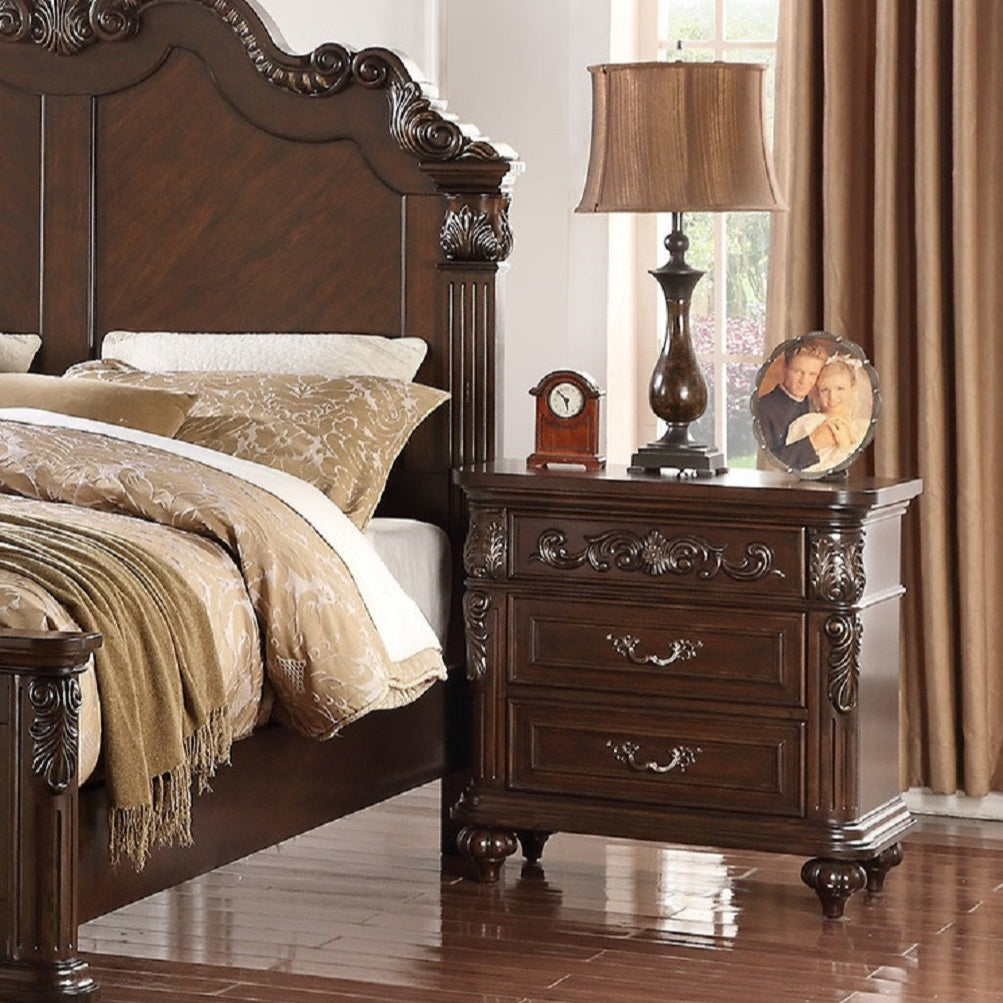 Traditional Antique Walnut 1pc Nightstand With 2-Drawers