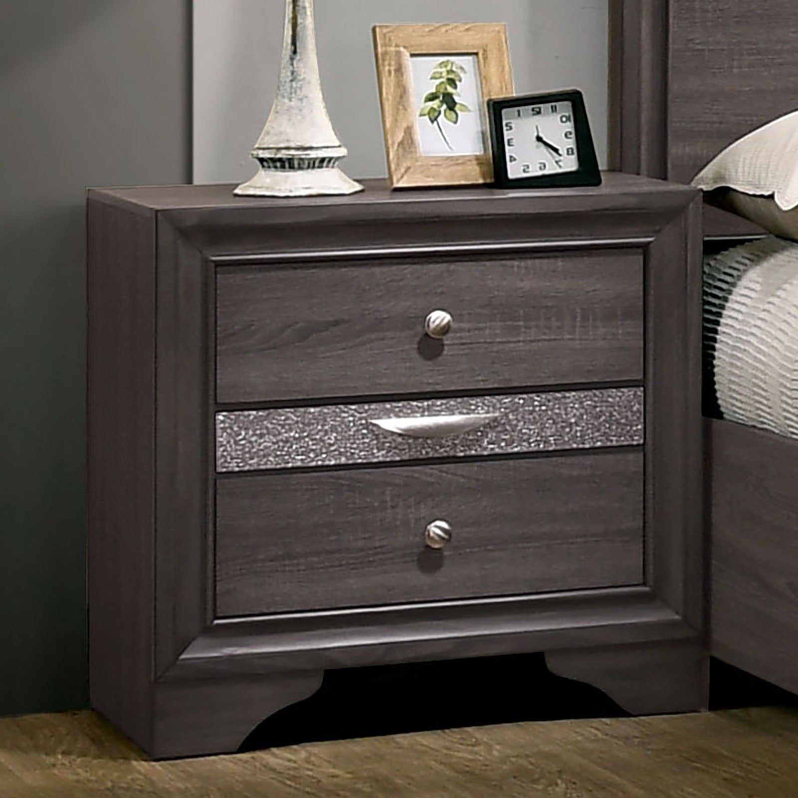 Contemporary Gray 1pc Nightstand Nickle Round Knob Handles
