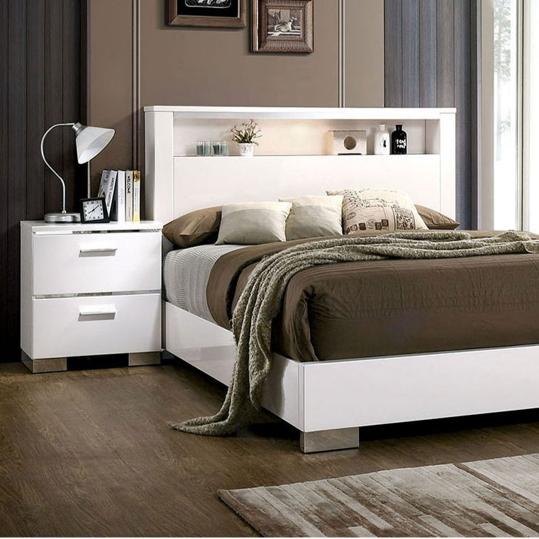 Contemporary 1pc White High Gloss Chrome Handles Nightstand