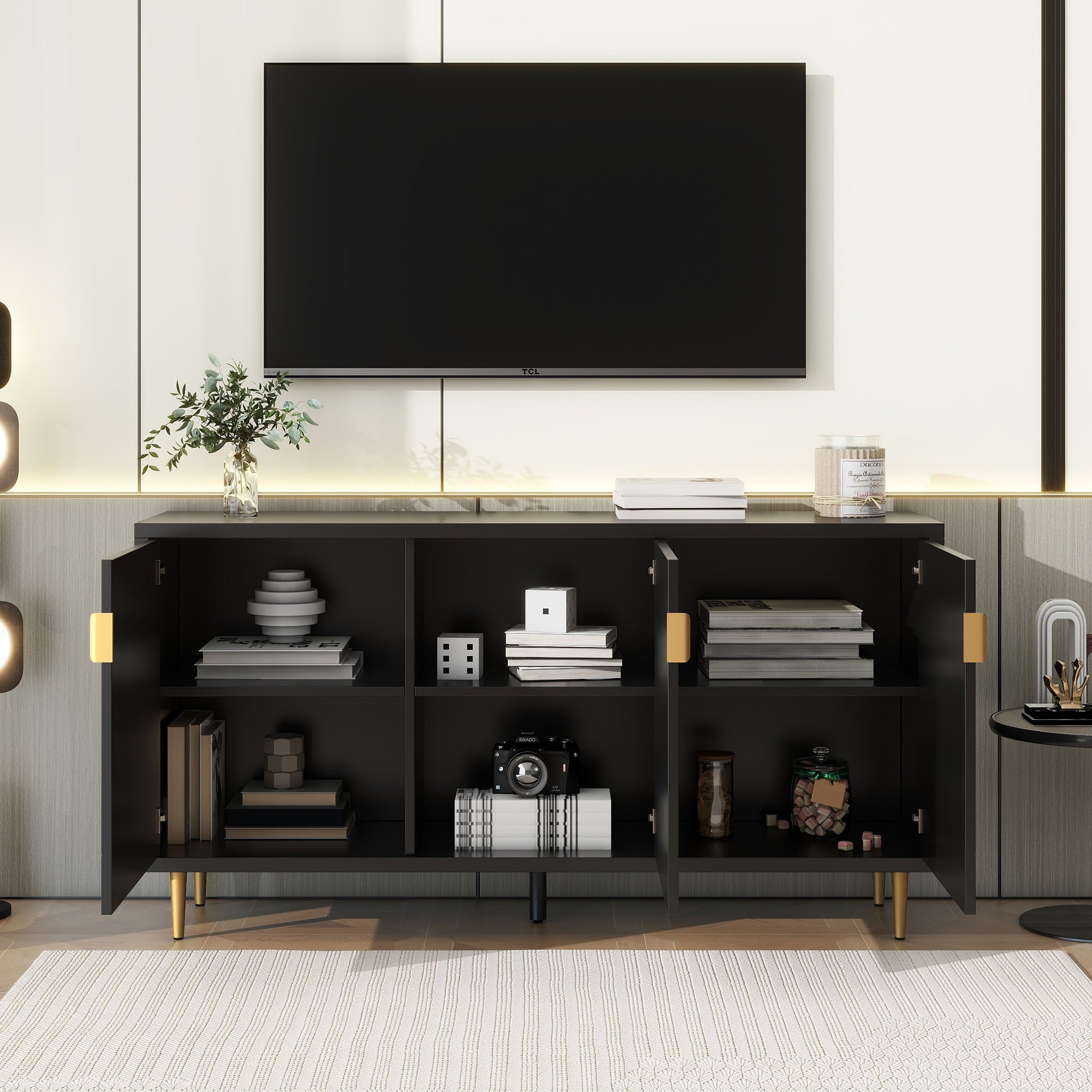 Modern TV Stand with 3 Doors and Adjustable Shelves
