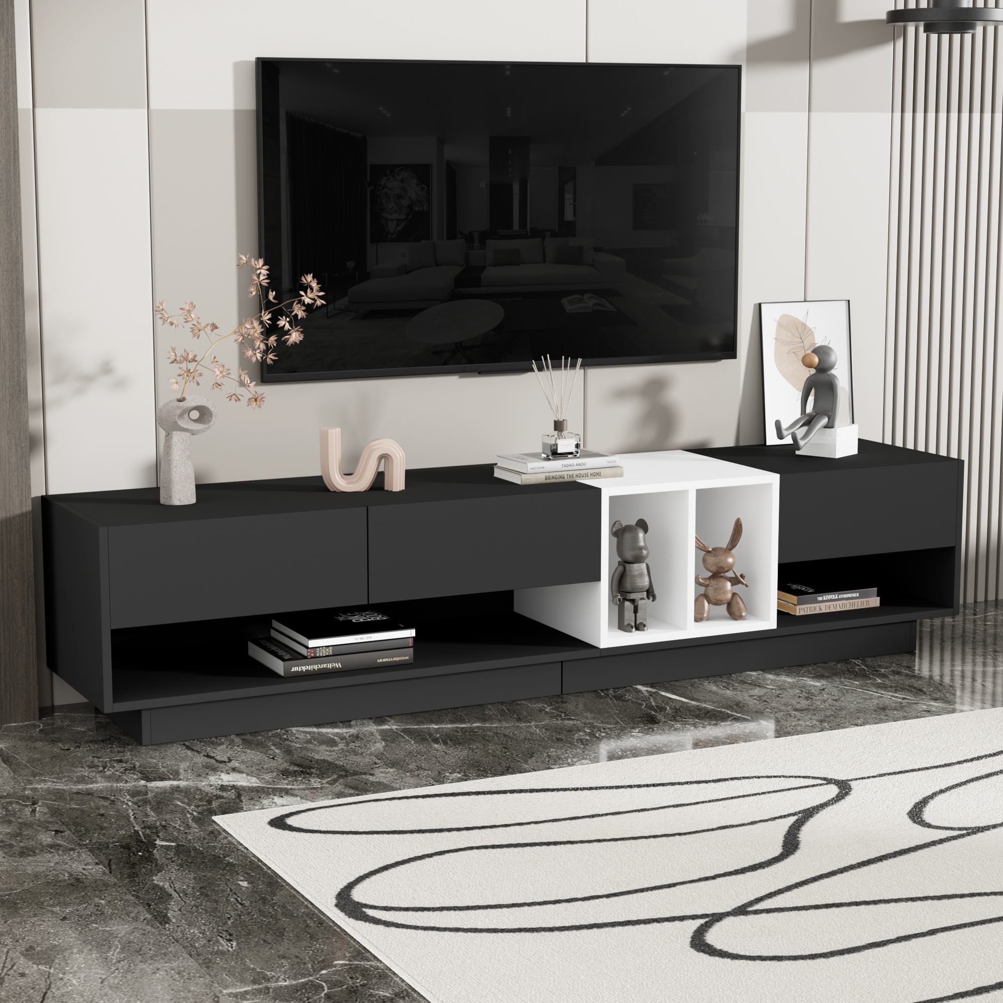 Modern Stylish Extendable TV Stand TV Cabinet for 80+inch TV